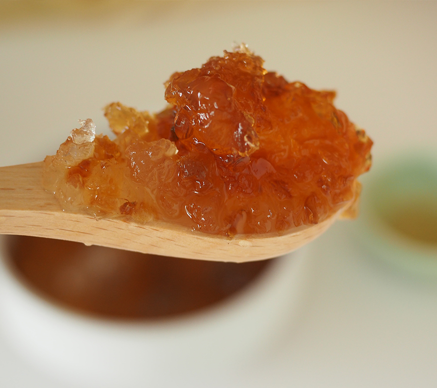 Peach gum is the resin or sap from peach and Chinese wild peach trees. The Chinese have been eating peach gum or peach sap for centuries and is now being touted as a beauty and health food product. Its versatility is loved by many as it can be used in savoury soups to desserts as well.
